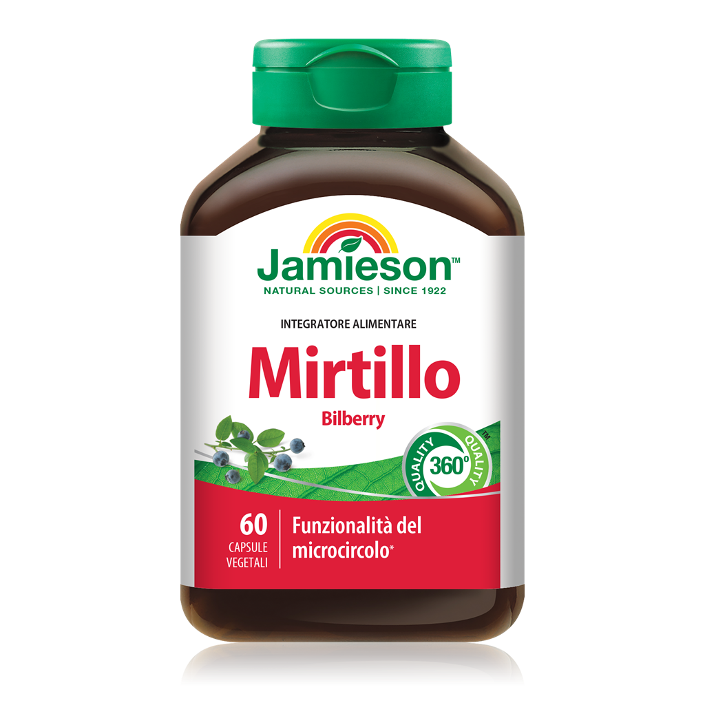 Il mirtillo nero (Vaccinium myrtillus) è una pianta appartenente alla famiglia delle Ericacee, i cui frutti sono ricchi di antociani, fitonutrienti dall’azione antiossidante. Mirtillo Bilberry di Jamieson è formulato con estratto standardizzato al 36% in antocianosidi, composti derivati dagli antociani, garantendo un apporto costante e altamente concentrato di questi preziosi principi attivi. Il mirtillo nero è noto per i suoi benefici sul microcircolo, contribuendo a ridurre la sensazione di pesantezza alle gambe, sul mantenimento della normale capacità visiva e sul benessere delle vie urinarie.