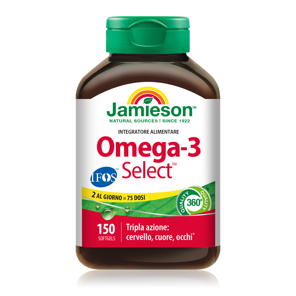 Omega-3 Select™ IFOS di Jamieson contiene olio di pesce da acciughe certificato IFOS™. La certificazione IFOS (International Fish Oil Standards) è un protocollo di analisi rilasciato da un ente indipendente canadese specializzato nel controllo della qualità degli omega-3. Grazie a tecnologie avanzate e rigorosi test, IFOS garantisce che l’olio di pesce sia puro, incontaminato e privo di contaminanti ambientali.