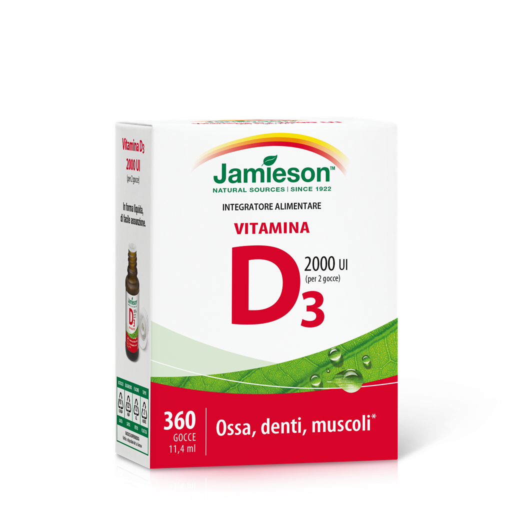 La vitamina D3, o colecalciferolo, è prodotta naturalmente dal nostro corpo quando la pelle è esposta alla luce solare. La sua principale funzione è favorire l’assorbimento di calcio e fosforo, essenziali per il benessere di ossa e denti. Inoltre, supporta il sistema immunitario e la funzione muscolare. Vitamina D3 2000 UI Gocce è una soluzione pratica e versatile, adatta a tutti, che può essere facilmente dosata direttamente sulla lingua o aggiunta a qualsiasi alimento.